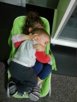 Η δε σχέση τους με τον μπαμπά τους είναι απολαυστική! Την Παρασκευή -που ξεμείναμε από baby sitter!- ο μπαμπάς μας κράτησε όλη μέρα τα μωρά μας, μάς μαγείρεψε και έπαιξε μαζί τους …μέχρι τελικής πτώσης…. (του μπαμπά!!)… Τα μικρά τον κυνηγάνε συνέχεια και τον αγκαλιάζουν και μόλις απομακρύνεται, δυσανασχετούν!
