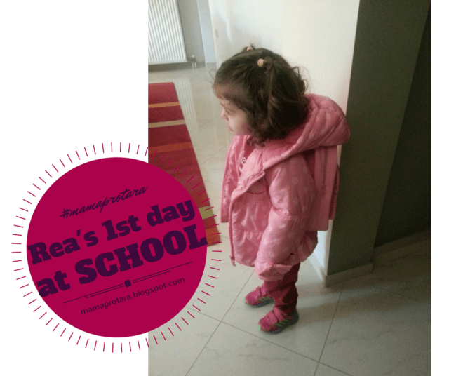 Η πρώτη μέρα, την περασμένη Τρίτη 10 Φλεβάρη, η Ρέα ξύπνησε, της φόρεσα το καινούριο ζευγάρι κόκκινες φόρμες που της αγοράσαμε, φόρεσε το ροζ το μπουφανάκι της και έβαλε στην πλάτη την ροζ «Πέππα» τσαντούλα της! Εμείς φυσικά, οι τρελοί κι αλλοπαρμένοι γονείς, αρχίσαμε τη φωτογράφηση!! Πάμε μια φωτογραφία με τον μπαμπά, μια μόνη σου, μια για το blog της μαμάς (χιχιχι…) και η Ρέα να γελάει συνεχώς και να ανυπομονεί γι’ αυτό που τόσο καιρό ζητούσε «Μαμά, πότε θα πάω σχολείο;«.