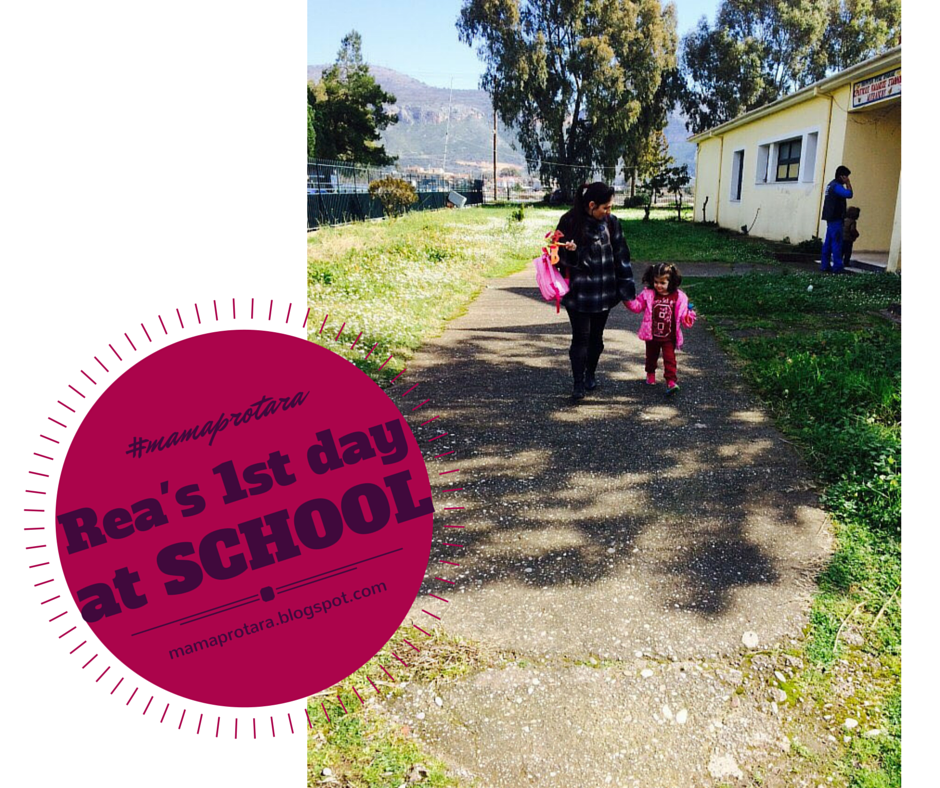 Με μεγάλη χαρά, κατέβηκε στον κάτω όροφο για να ανακοινώσει με χαρά στη γιαγιά της ότι «Δε θα μείνω σήμερα εδώ. Θα πάω σχολείο. Εσύ θα προσέχεις μόνο τον Άρη σήμερα (τον αδερφό της!)» και μετά γύρισε στον αδερφό της και είπε «Άρη, εσύ δε γίνεται να έρθεις. Στο σχολείο πάνε μόνο τα μεγάλα παιδάκια. Εσύ είσαι πολύ μικρός ακόμα!«. Και ξεκινήσαμε…