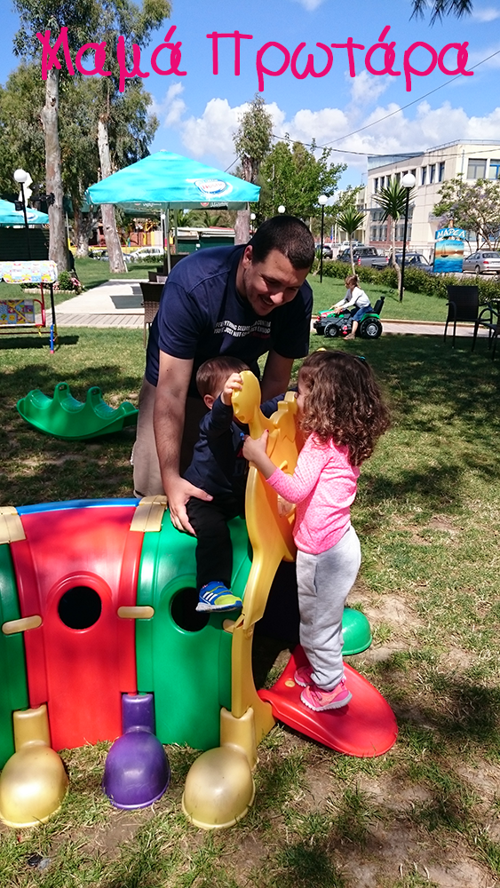 Και μάλιστα έκανε και φιλίες! Γνώρισε ένα κοριτσάκι και έτρεχαν πιασμένες χεράκι-χεράκι, έπαιζαν μαζί σε όλα τα παιχνίδια και δεν ήθελε να φύγει με τίποτα!! Ήταν ένα υπέροχο κυριακάτικο πρωινό, εμείς απολαύσαμε το καφεδάκι μας χωρίς να κυνηγάμε αγχωμένοι τα μωρά, αφού γυρνούσαν στο γκαζόν και στα παιχνίδια, παίξαμε μαζί τους, χαρήκαμε τον όμορφο ήλιο και τις μυρωδιές των λουλουδιών γύρω μας! Η ζωή είναι πολύ ωραία, ρε παιδί μου!