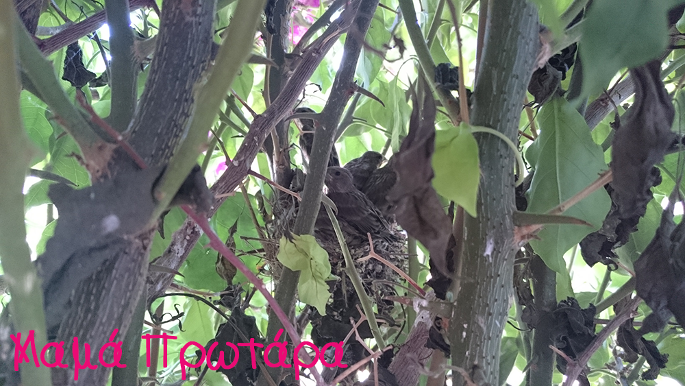 Φωλιά από σπουργιτάκια στη βουκαμβίλια της βεράντας μας