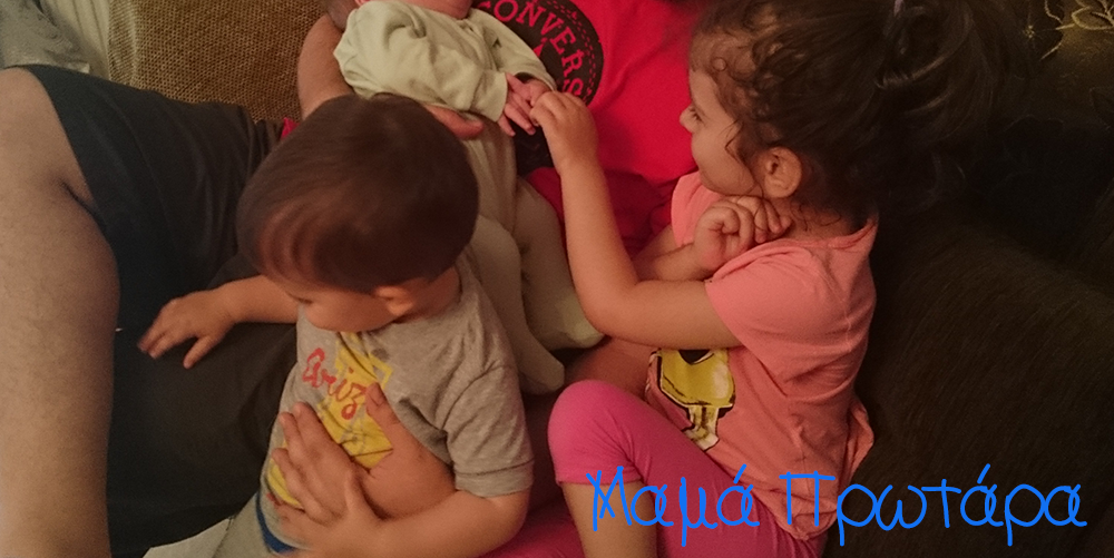 Αυτή την εβδομάδα, τα παιδάκια μου γνώρισαν επιτέλους και την νέα πρωτοξαδερφούλα τους, που μόλις σαράντισε και χάρηκα πολύ που με κοιτούσαν με γέλιο και χαρά όταν την είχα αγκαλιά… Ούτε ζήλειες, ούτε κάποια περίεργη αντίδραση… Μόνο μεταξύ τους ακόμα δεν το έχουν βρει… Μονομαχία για την αγκαλιά της μαμάς μέχρι τελικής πτώσης!!