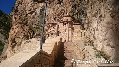 Είχαμε, που λέτε, στο μυαλό μας να πάμε μια βόλτα σε ένα μικρό εκκλησάκι, χτισμένο μέσα στο βράχο, στην Παναγία την Ελεούσα, σε ένα φαράγγι γεμάτο κυπαρίσσια, βελανιδιές, πουρνάρια και άλλα πανέμορφα και πολύχρωμα δεντράκια και λουλούδια. Το συναντάμε στο δρόμο μας κάθε φορά που πηγαίνουμε στο Αγρίνιο και η Ρέα ήθελε να πάει οπωσδήποτε. Έχει και μια αδυναμία στα εκκλησάκια το παιδί μου!